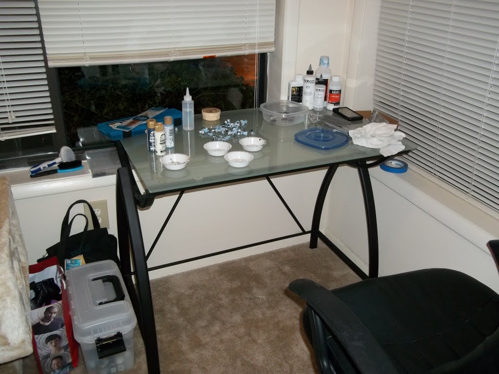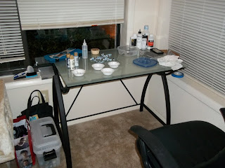 It's 2012 and I'm now in a new apartment. Boxes are everywhere and it's a mess, but I've got my main essentials, the Internet! I'm looking forward to expanding and customizing my workspace as my previous one was simply the dining table. Once I'm all set up, I'll finally be able to finish up my Space Wolves.
