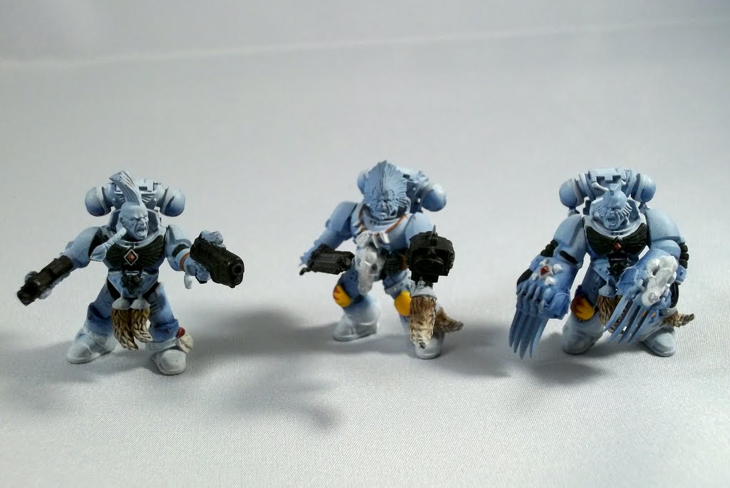I got a small lightbox to use to make pretty pictures, so here's a test picture of my current Space Wolves WIP. They're coming along well, what with the few time I get after work during the weekdays. I'll probably be stopping at the local game store and stocking up on some Reaper paints they just got in stock.