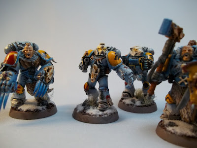 These models look great! I especially like the battle damage and the power weapons. The lightning claws look like they were difficult to do!